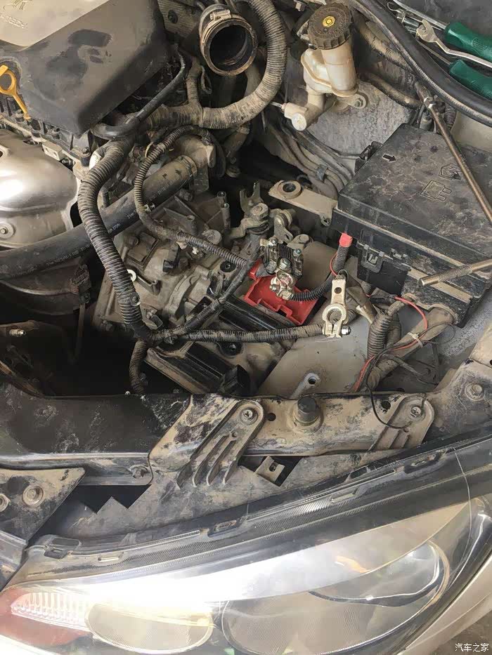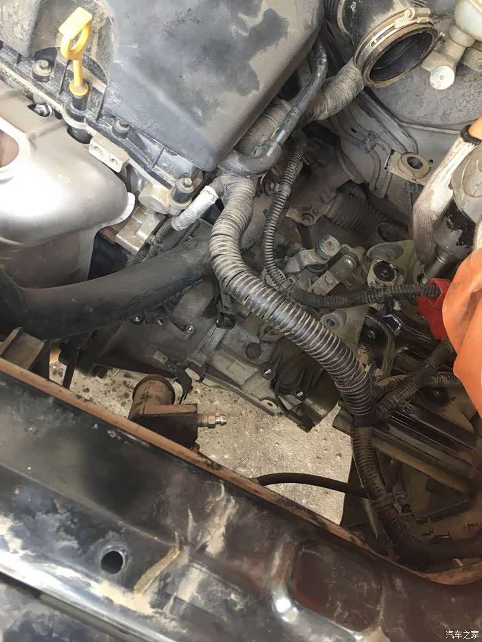 这是把变速箱支架拆掉以后的样子,半个变速箱在下面掉着呢