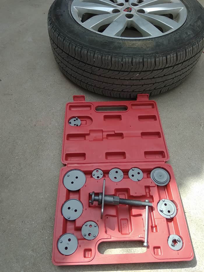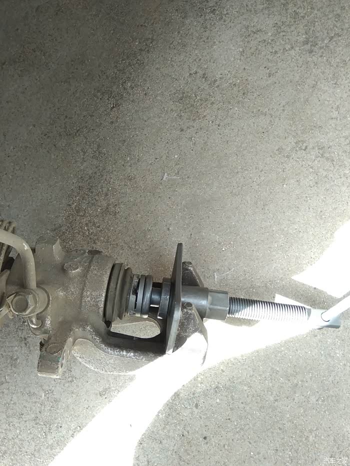 刹车分泵回位工具,后刹分泵回位和前刹不同,前刹分泵可以直接撬回而后分泵必须顺时针旋转顶回位,没有工具可以拿尖嘴钳旋转着顶(比较困难)