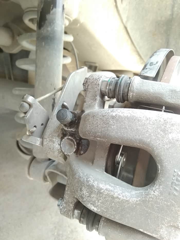 分泵两个固定螺丝拆掉,图中是上面的螺丝,下面还有一个都逆时针拆掉。