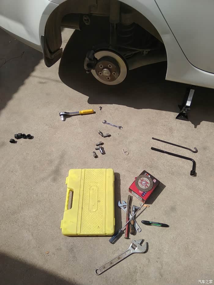 前轮先找东西挨住,上千斤顶拆掉轮胎