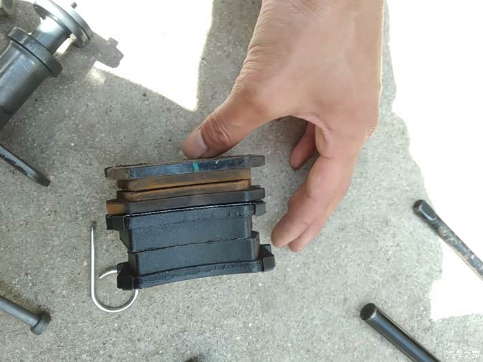 新旧刹车片对比,旧的应该还能用1W,换新的省心。