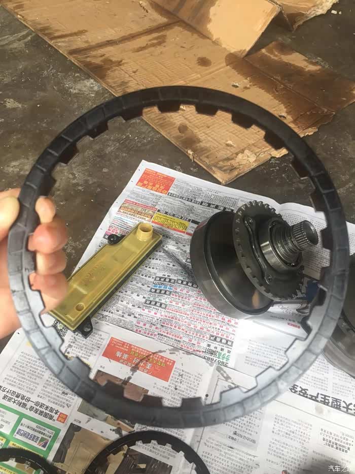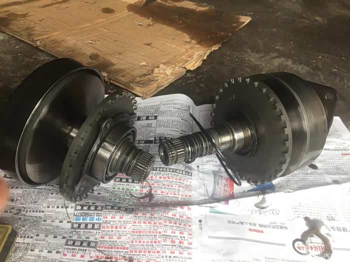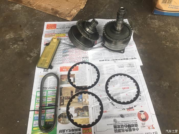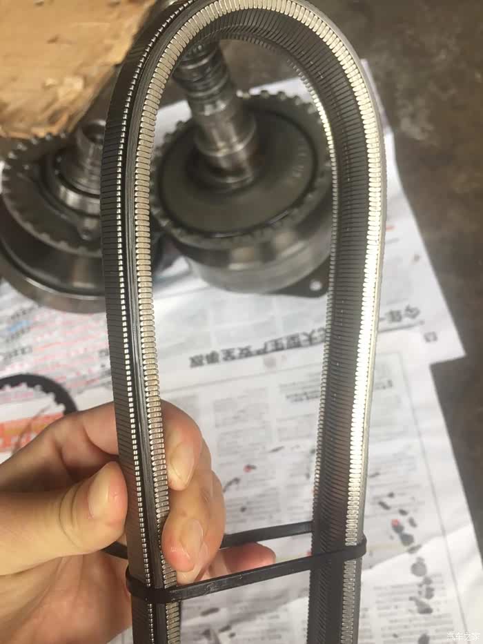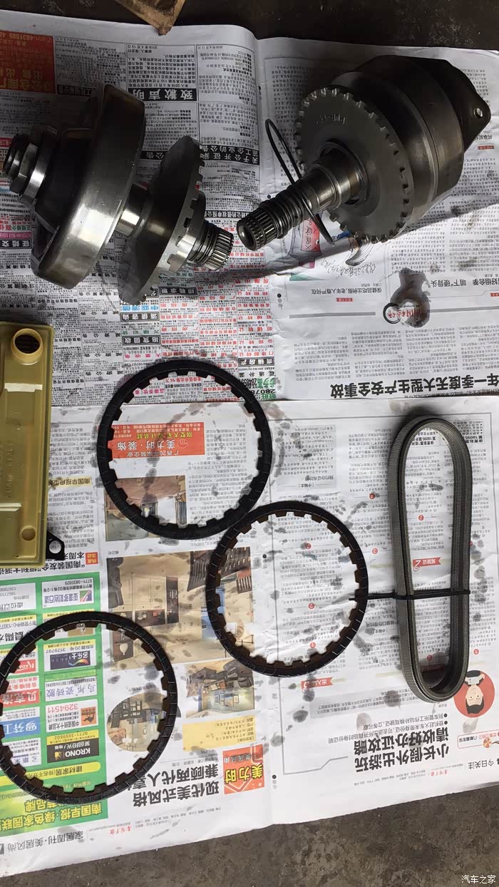 我问师傅,换了什么配件,师傅说:哎哟,换得多了去了!拆的时候变速箱油臭的要命才换了300公里的变速箱油啊看到换下那么多配件,心碎了一地!主副传动轮、CVT链条、离合片、油格。