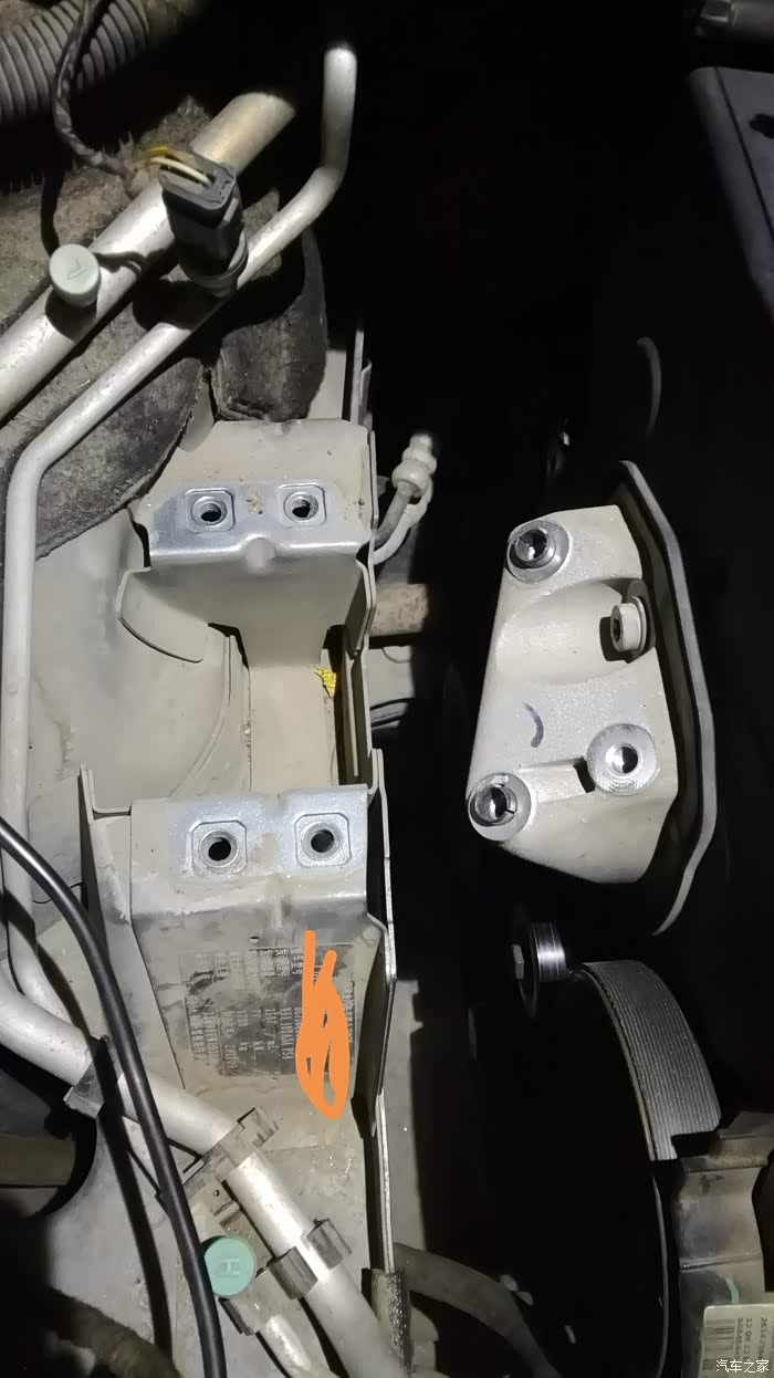 怠速时发动机间歇性抖动,转速表无变化,已经有1年多了,节气门,火花塞,机油等更换无改善,论坛研究了一段时间,感觉应该是发动机脚该换了,5年多的车了,某宝大家都去的那家买的,130块的,自己更换,晚上搞的,图片不是很清楚