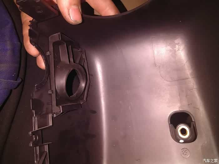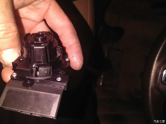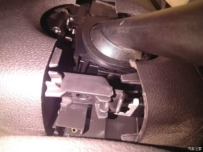 这是点火开关那头,两边各一个槽,钢丝就是插到槽里撬白头上的塑料扣,这个真要耐心