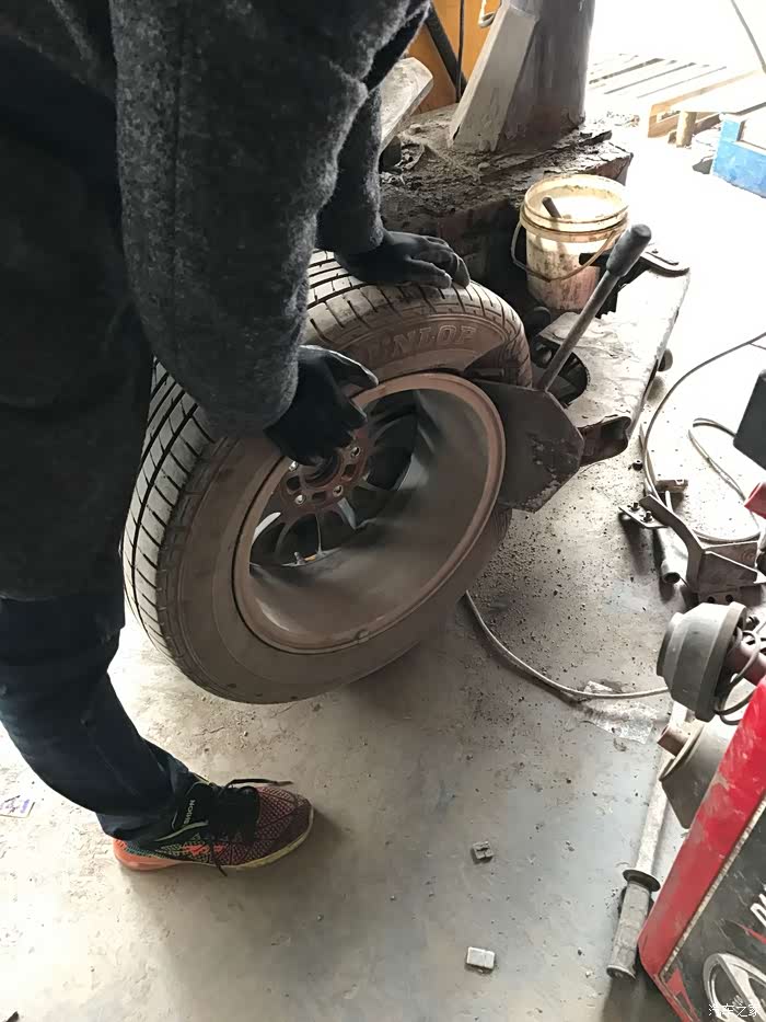 动平衡贴的铅块比较少一下就做好了,换完轮胎后才发现轮胎有裂口的右前胎没有漏气,漏气的左边轮胎没有钉子与裂口,师傅说钥匙裂开漏气的话不可能是慢性漏气的,气压会下降很快,不过这个慢性漏气的话查原因也可能会很难。