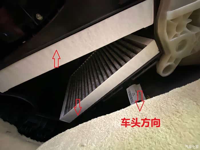 这里注意一下,两片空调格安装的方向不一样的,不过我买的这个没有标明方向,我就按文字的方向为正,朝箭头安装的,两片空调格中间是空气进入的地方,装完复原就OK了