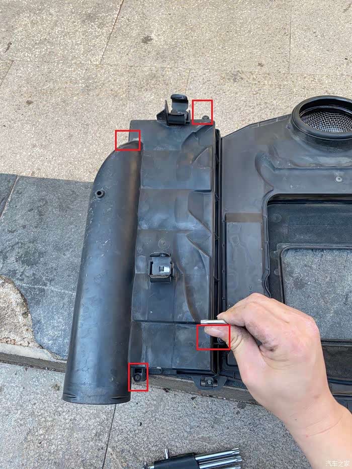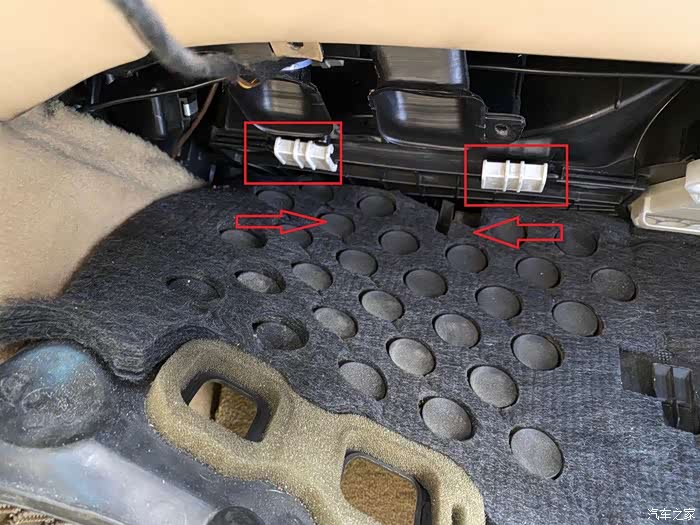 这是空调格的板子,那两个白色的扣子往箭头方向推到底,据说12款后这个板子除了卡扣还加了螺丝,我的没有