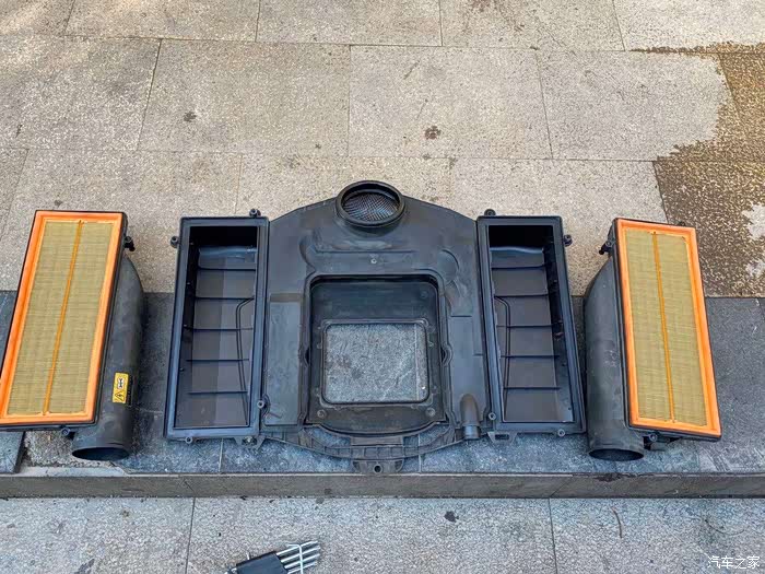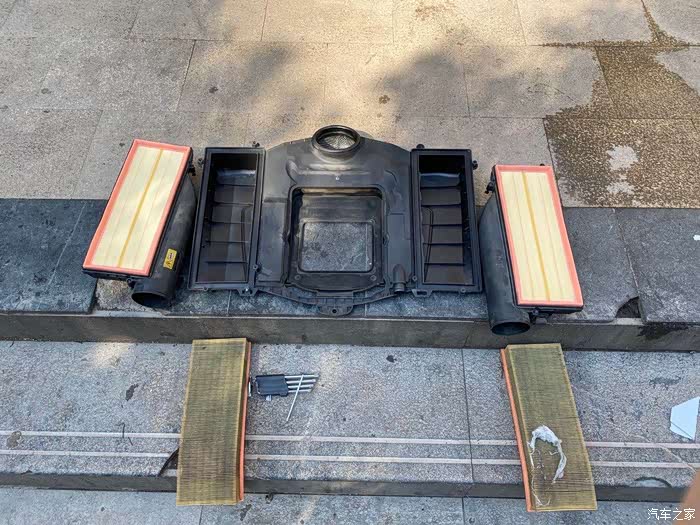 这个还是比较脏了,原本应该是黄色的都变成黑色的了,可见V8大自然吸气还是很能吸的
