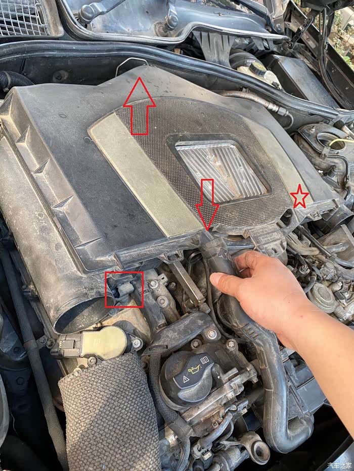 我这个是M273的发动机,其它的可能不一样,发动机进气格,简称空气格,车载空调进气格简称空调格,各位不要搞混了