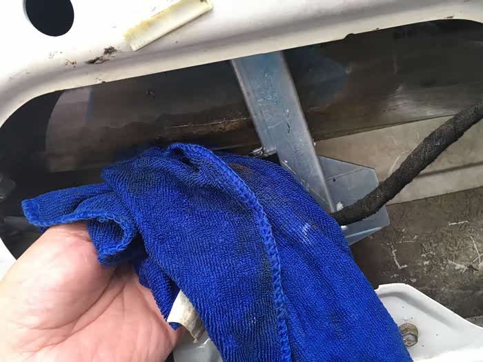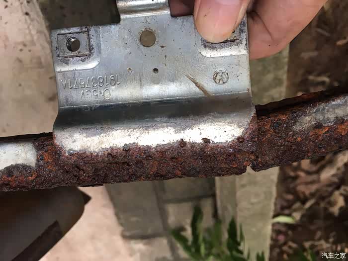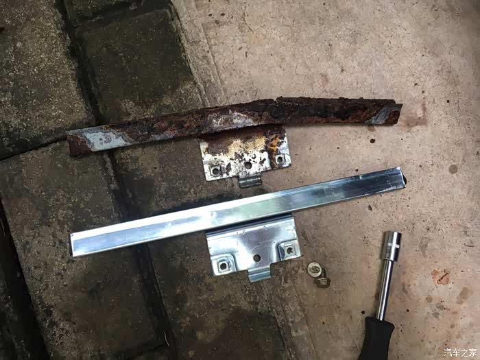 生锈的玻璃托架,看到了没有?右边的都弯了,卡住的时候,把它顶弯了。