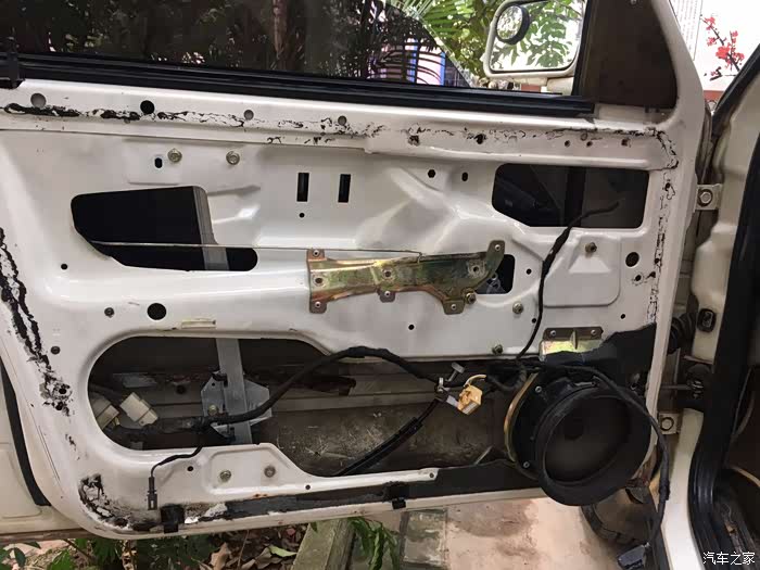 拆开后的内饰板,上次装玻璃升降器的时候拆了里面那层,不要了!所以就那么直接