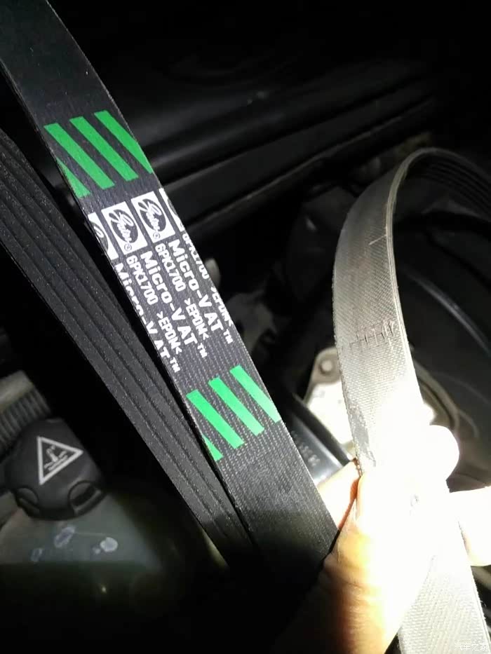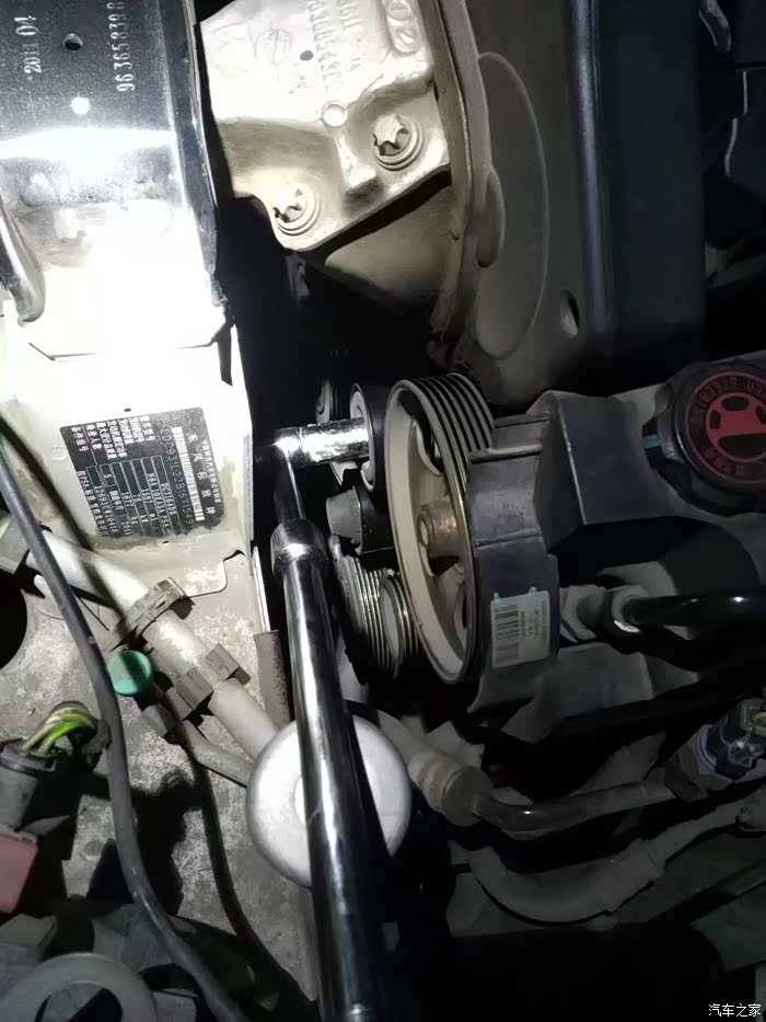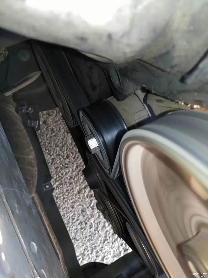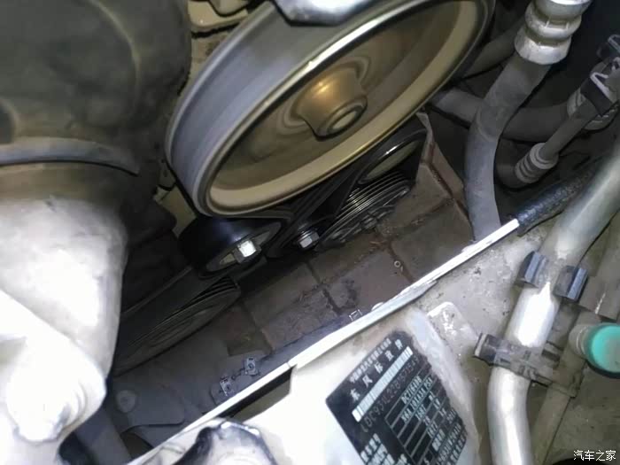 熄火,扳涨紧,挪皮带调位置,点火,问题依旧,心窄了,本想就这么着吧,又担心皮带转出来,拆!