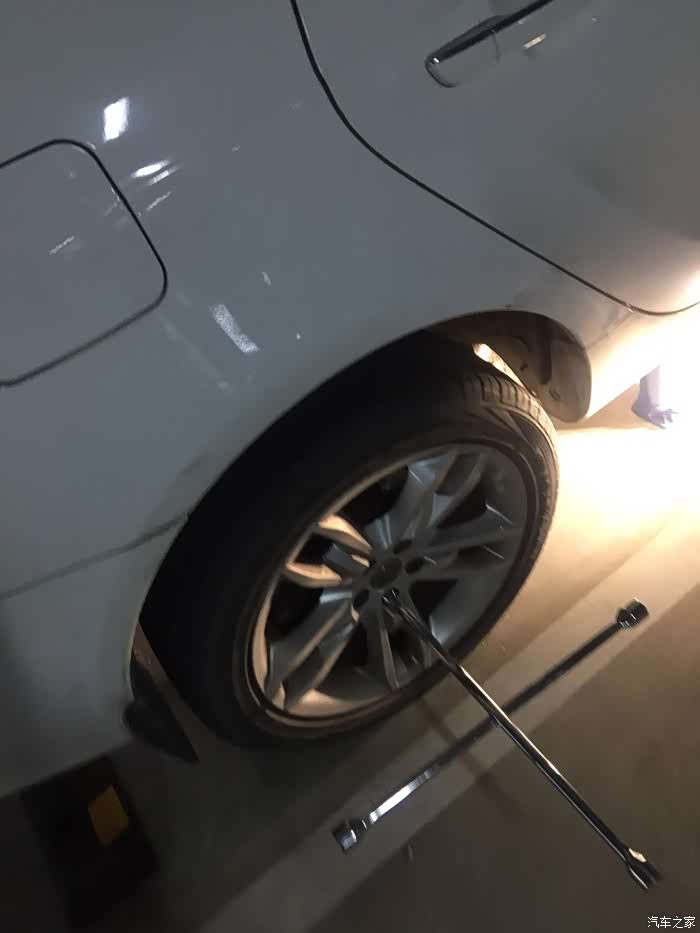 先把轮胎螺母松下,然后提升车轮,老司机必备的手艺,原车的扳手已经不用 随车就带这家伙。