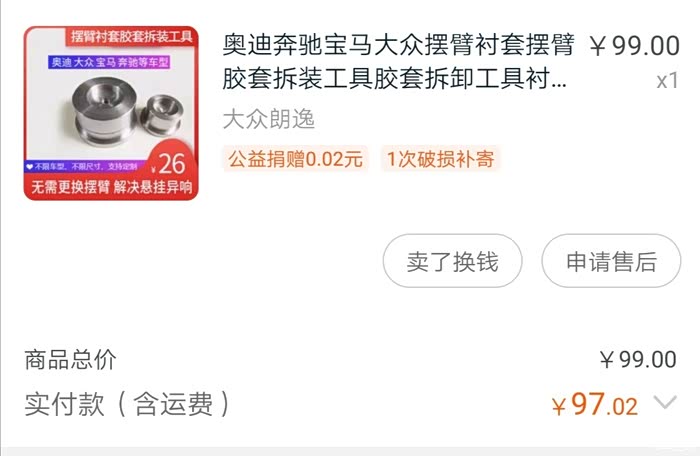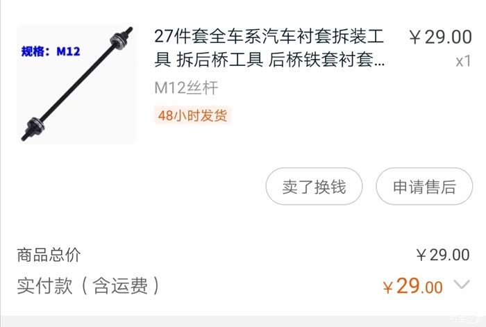 衬套拆装压垫到手了,或许有人问,你这些工具不便宜,是不便宜,但比去外面还省了工时费,所以换完手里多了一些工具而已