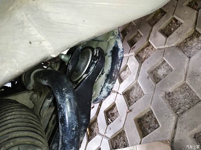 先换的左边,三角臂要用千斤顶顶起到水平位置,不然大胶衬套螺栓很难拆,而且容易损坏