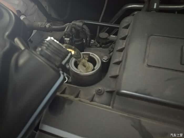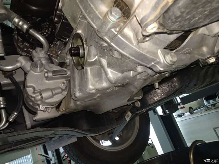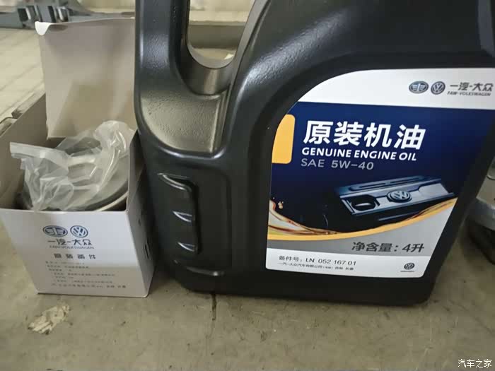 然后升高车子,放机油,师傅还说这上紧放油螺丝和机油格都是要用规定的力矩标准的,过紧和过松都不行的. 原厂的机油和机油格