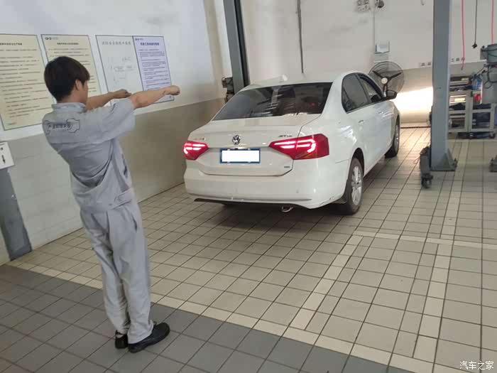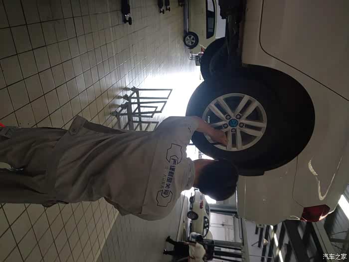 售后师傅检查灯光,气压,轮胎,都得专业用心的,今天外面的温度是33度,车间内比外面热很多,车间这么热,师傅们还是挺认真的。