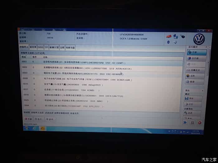 电脑检测相关的汽车上的电子设备是否正常。