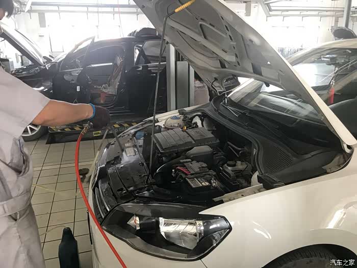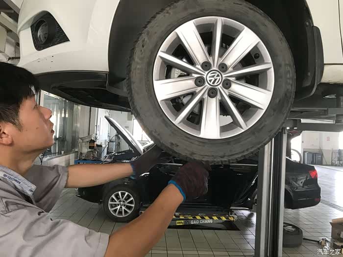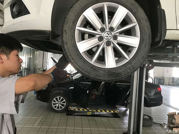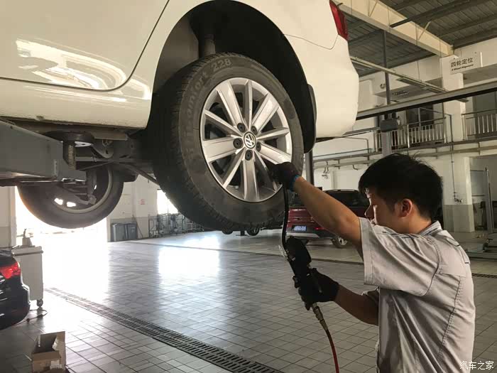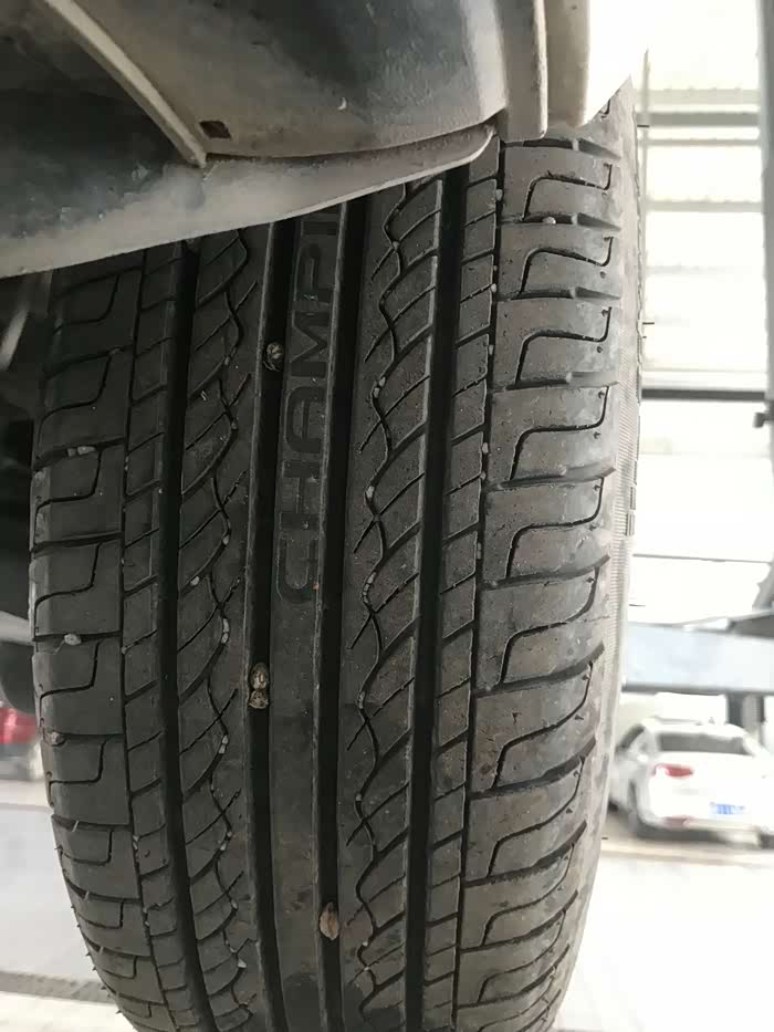 4轮都缺气,机修师傅很贴心的给他多充了一点;