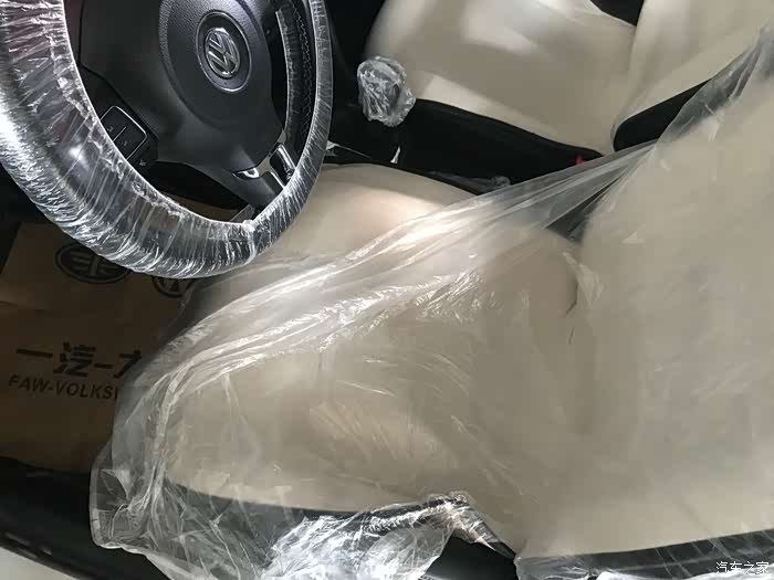 米白色的坐垫,很干净,准备保养了,四个保护套加脚垫全上身了;