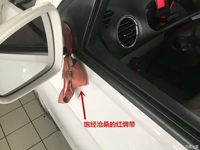 提车图个喜气的红绸带,饱经沧桑啊,没舍得扯下来。