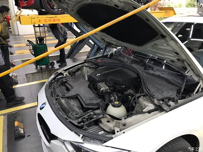 小伙加一点看一下机油油位,说是公司规定,需要按照8:1:1的比例加注机油,加了四升后,最后还是按我的要求加4.3左右,我觉得N20这个量完美