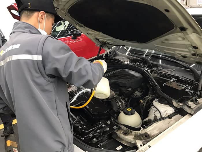 首先用专用清洁工具清洁发动机舱饰盖、空滤壳体等