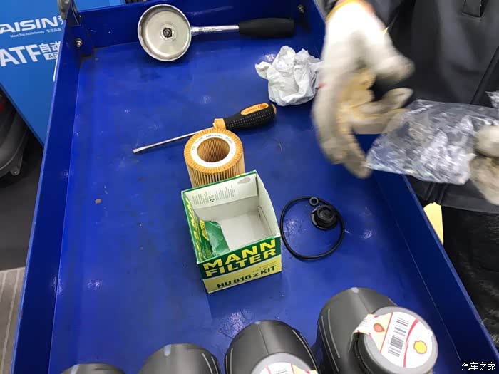 安装好新机滤后就差不多算完成机油保养了。