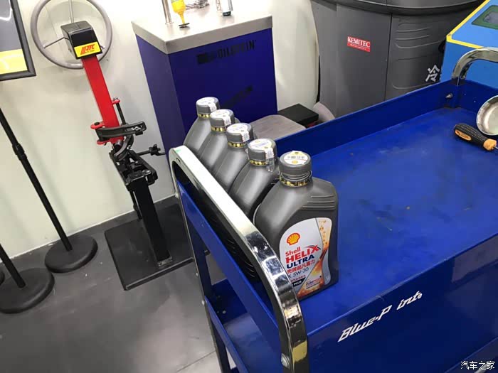 旧机油放干净后开始选油,选了398套餐的灰壳5W30,虽然店里推荐用5W40,老车也更适合用40,但从一开始就用30,就继续用5W30吧。