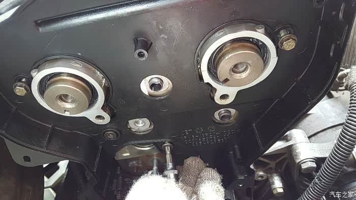 拆拆拆,凸轮轴定位,如图,塞到洞里拆,这个2个圆盘一个进气一个出气