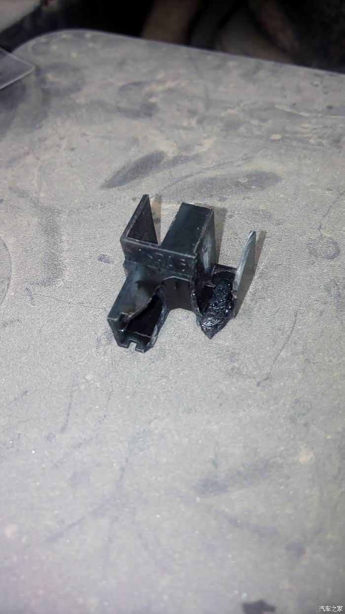 这是烧熔并断开的灯座外套,这个熔了,会影响灯与电源线的连接,导致灯不亮。而且如果没有这个,正负极接口也可以接灯,不过连接不牢,长期使用如果掉落,有正负极短路的险。因此,必须更换,将就不得。