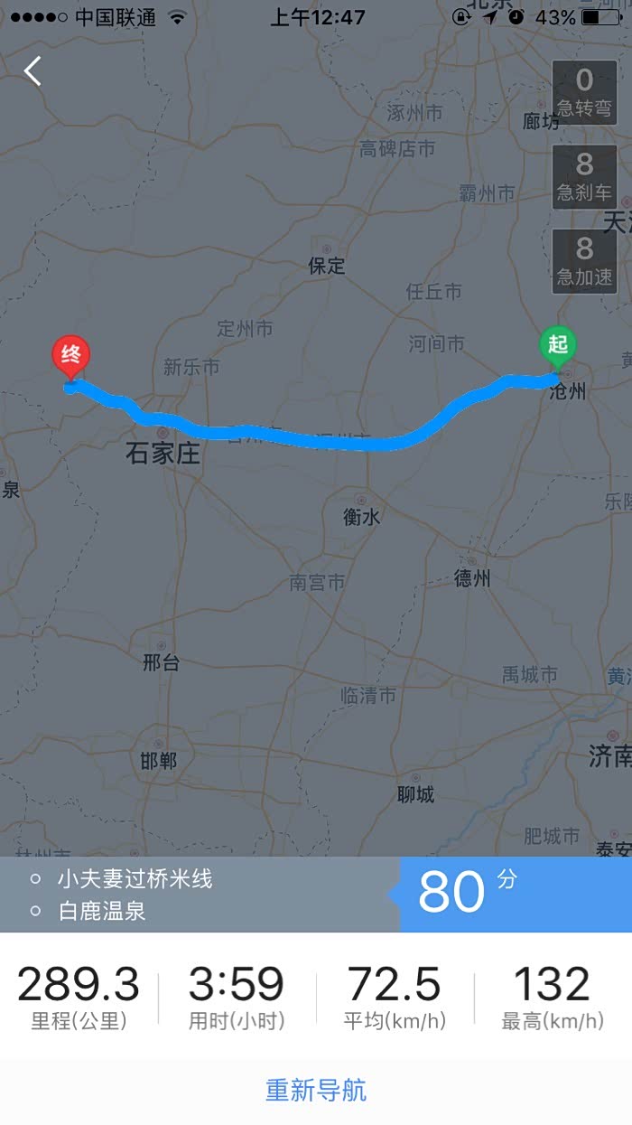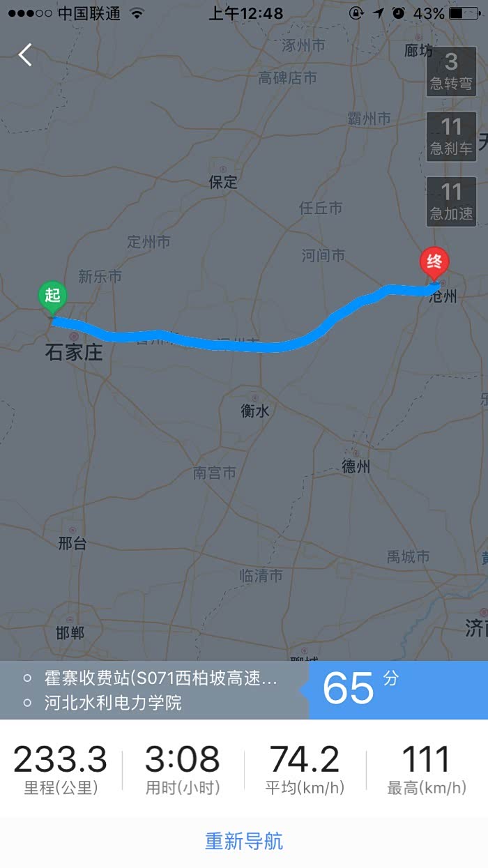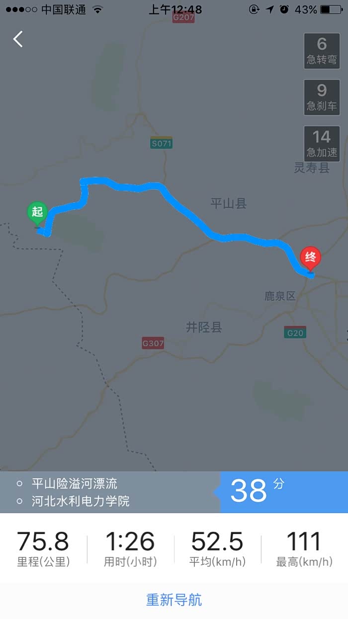 第二天下午返程,中间走到一半,感觉走错了,从新再原地有开了一下导航,所以有两个。