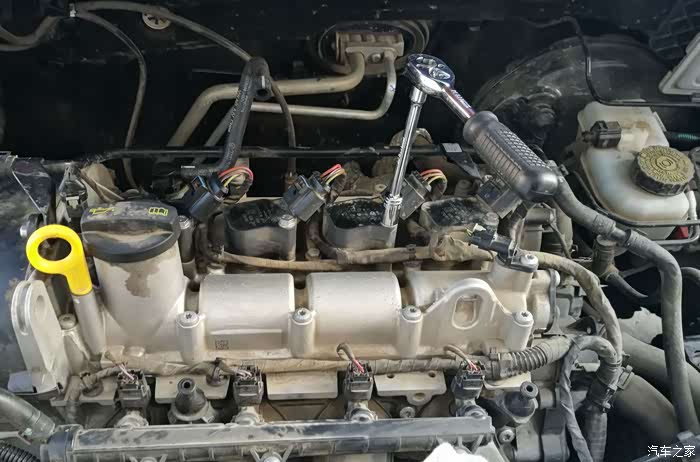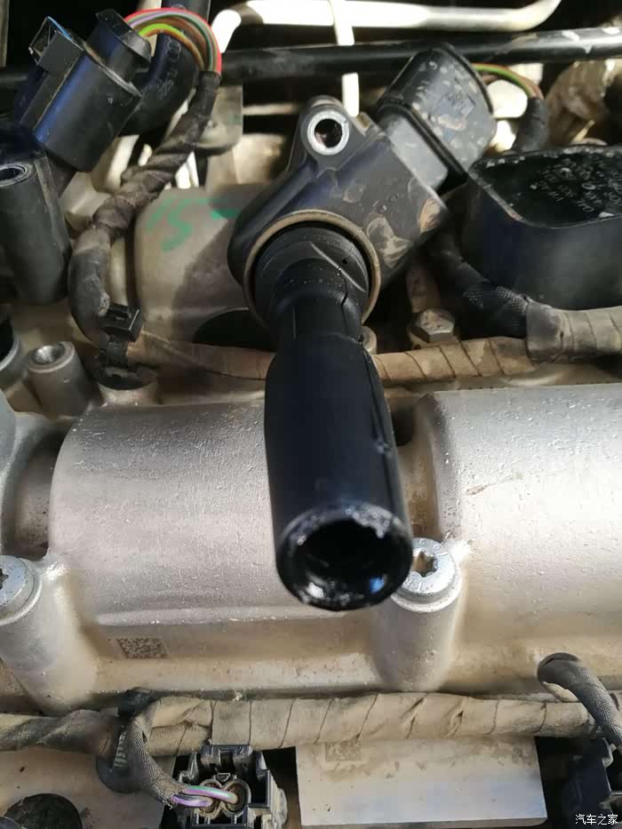 用力拔下点火线圈,还好胶套没断,预先准备的胶套没用上。