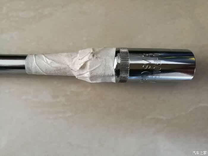 拧紧后发现套筒没办法拔出来,重新卸下火花塞用手头上现有的美纹纸缠上,这样可以避免套筒拔不出来。