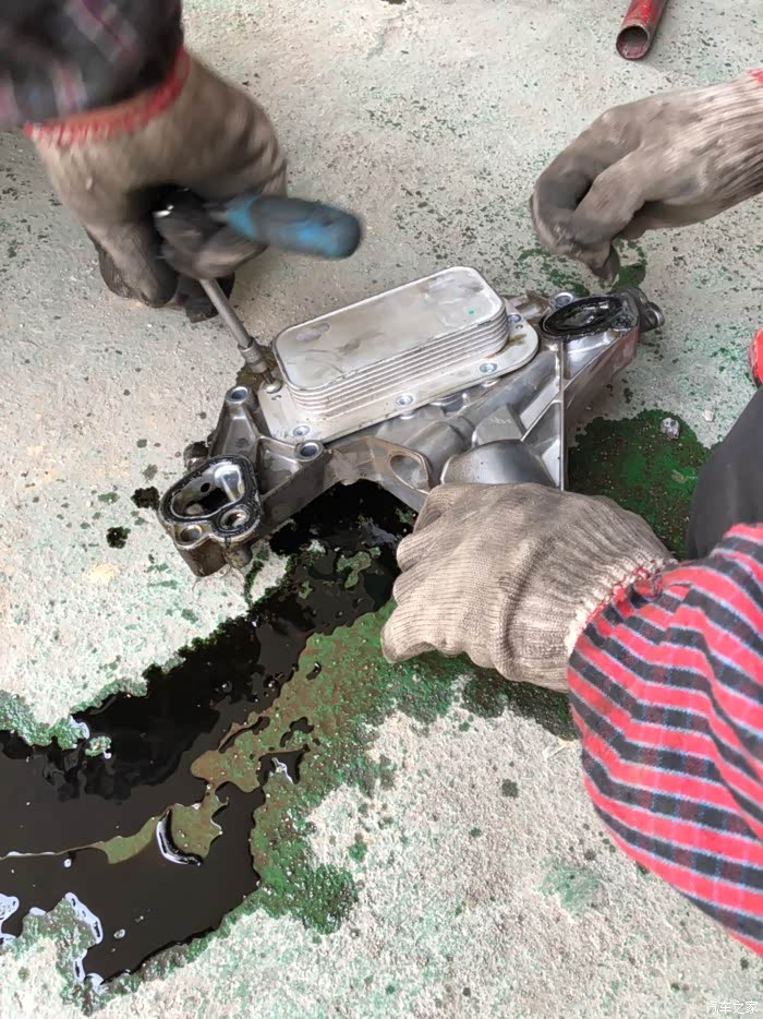 打开冷却液盖子,发现有油,成团,水箱漏水,又是拆拆拆。。。