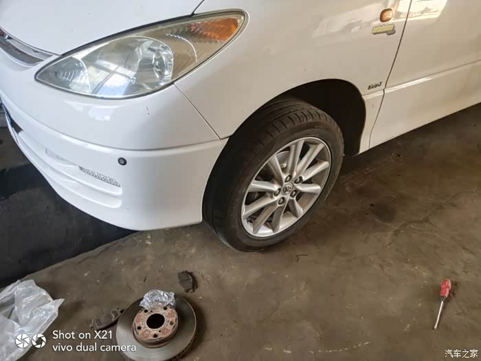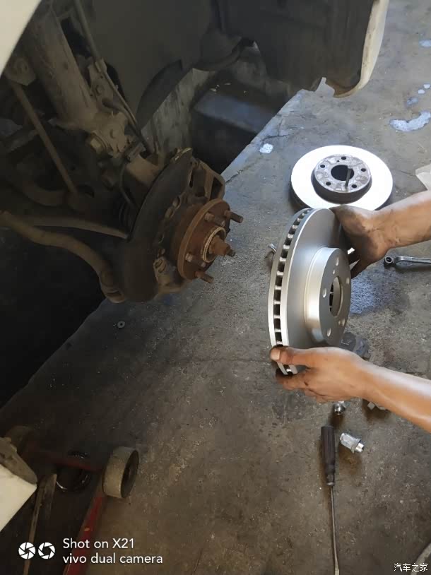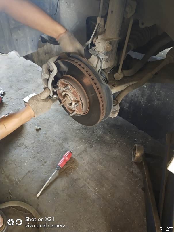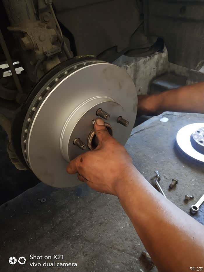 开始拆掉原车刹车盘