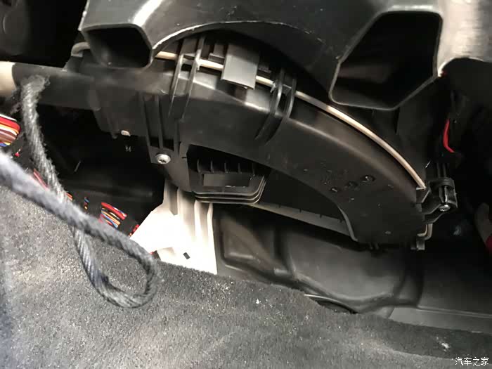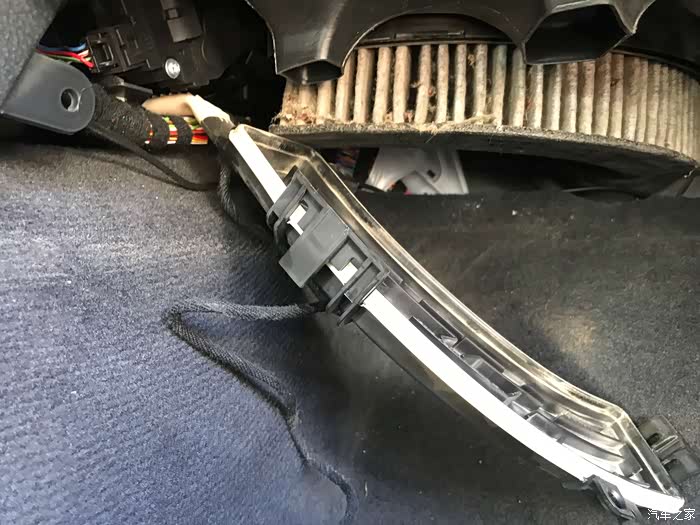空调滤在副驾驶脚下的上方,拆卸的时候还需要蹲下,还是很费力气的。这橘色连接头是4儿子在给我装舒适进入的时候遗留在出风口外面的,如果不是自己更换滤芯,都不会发现,这工做的太水。