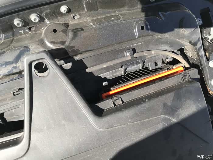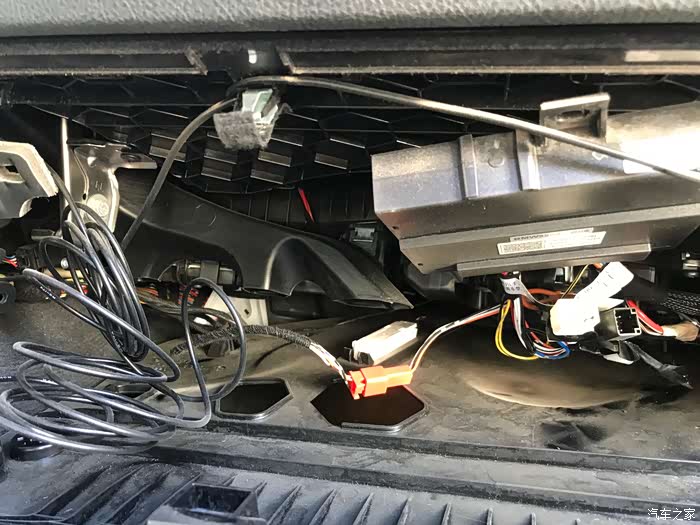 螺丝拧下后,手一扣盖板就下来了,这一步要慢点,使一点点力气就好。这打开后才发现4儿子这做工实在是差的一批啊。这线这么乱,中控大屏甩的USB接口的线,舒适进入模块的线。唉。回归正题,慢点是因为盖板上面有个灯,盖板拿下来需要把等的连接扣拔下来,这个很简单,小心一点就好,不要弄断了。