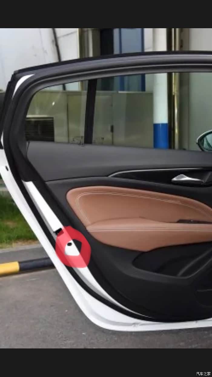 昨天群里的几个车友不知道后排儿童锁在哪,就是图中红圈里的那个黑点,拨一下就锁住了,很方便。外面在下雨,懒得跑去拍自己车了,借用一下汽车之家图库的图,见谅。哈哈。