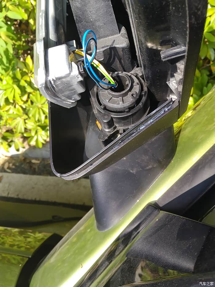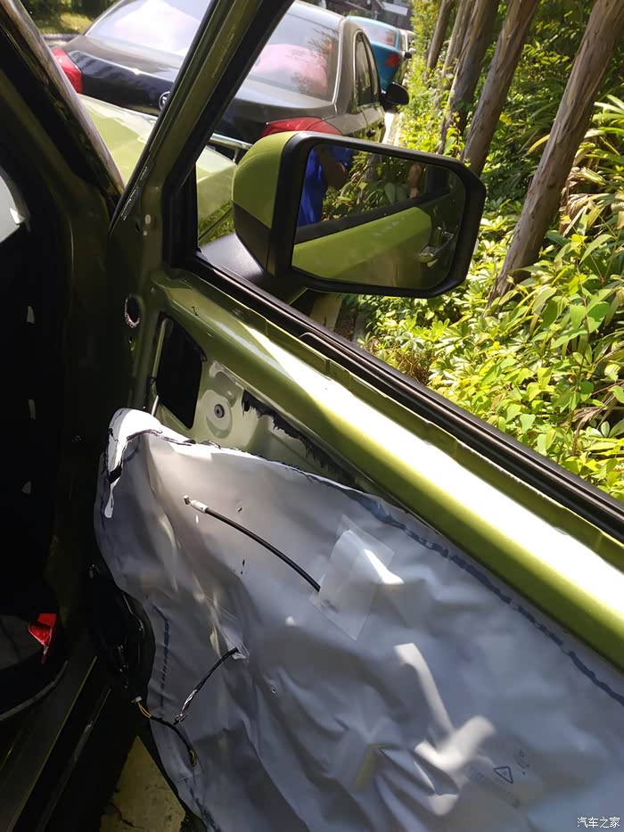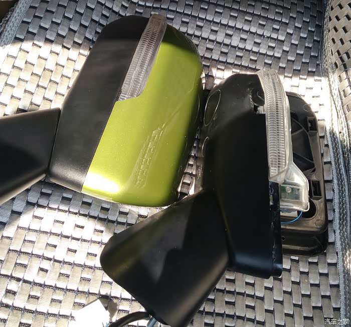 大功告成,上电一试,结果悲催了,电动调节功能无效。这里建议在安装总成前先测试所有功能再安装,本人只试了下转向灯就直接装上,结果。。。。唉!,只能再来一次了,受伤的门框