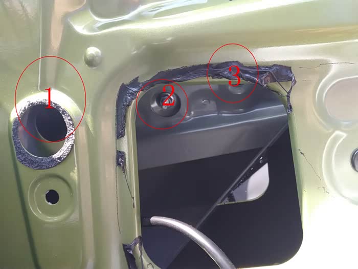 总成的三个紧固镙钉(红色标号位置),1位置有个双面胶粘着的盖子,直接撬开即可。1位置镙钉只能用套筒,中途上五金店买了把套筒,10mm的。拧下这三个镙钉就可取下总成