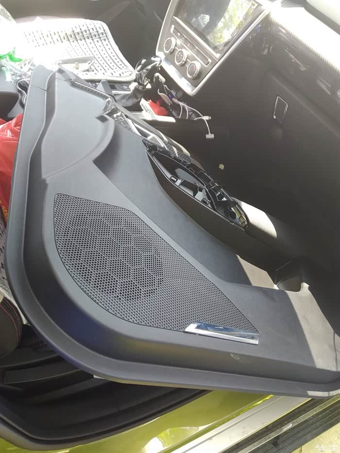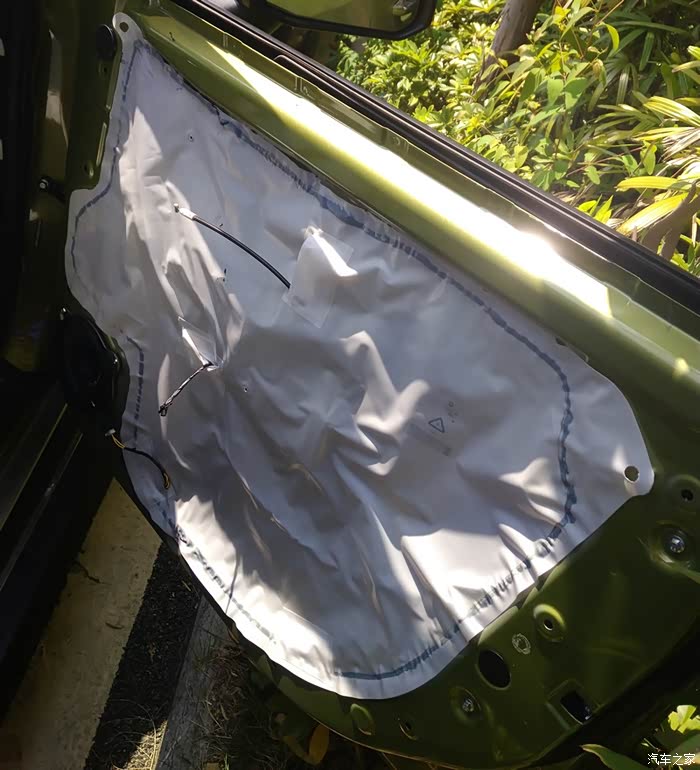 拆下内饰框的门,还贴着一层塑料膜,应该是起防水作用