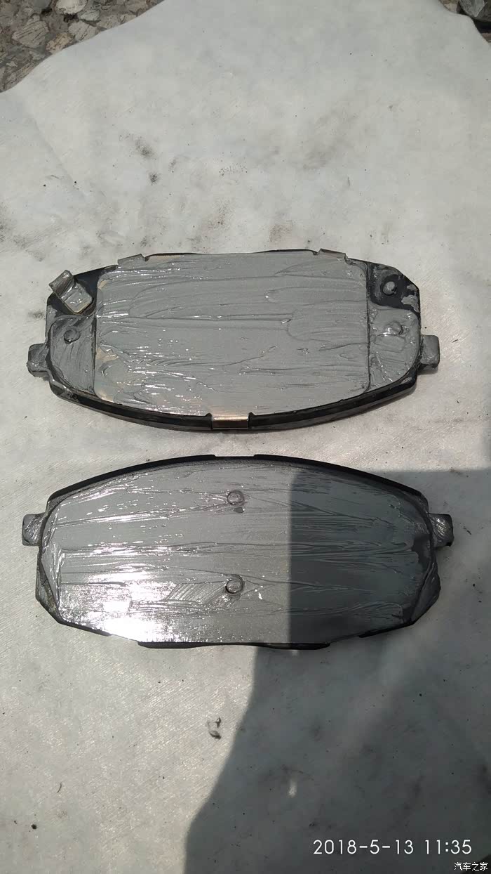 抹好耐高温润滑脂的背面剎车片,切记:剎车片正面不能抹哦