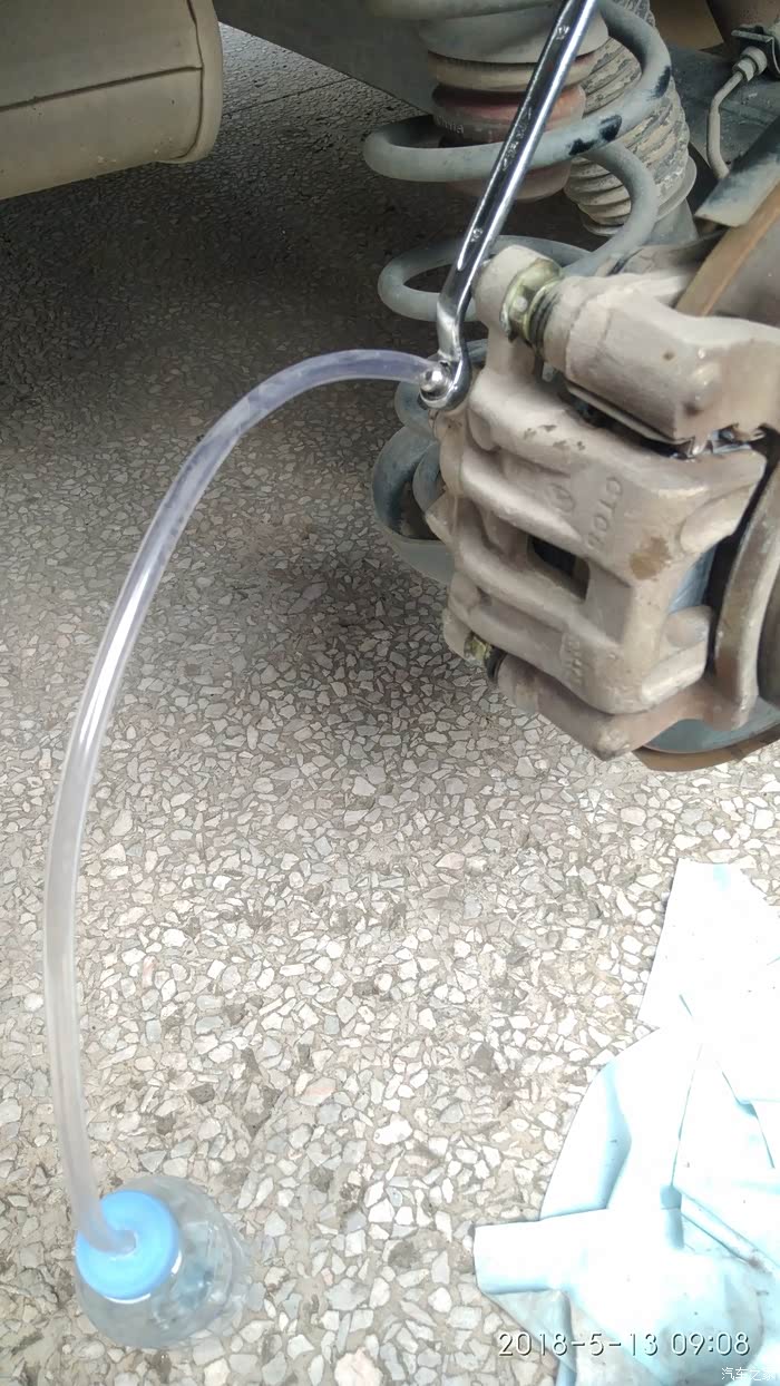 更换刹车油后用清水冲一下有剎车油的地方
