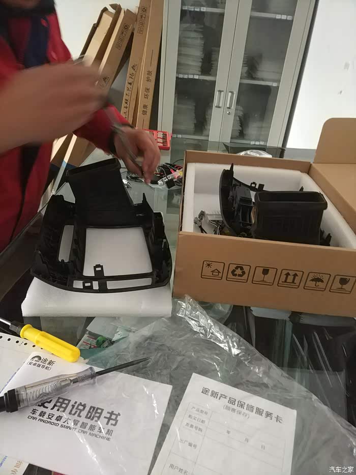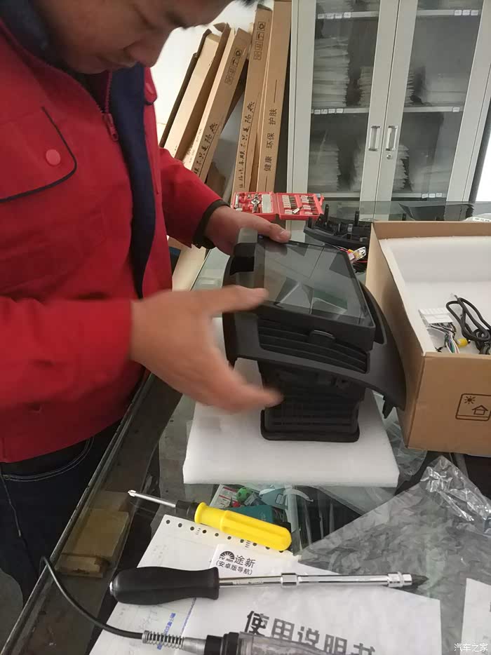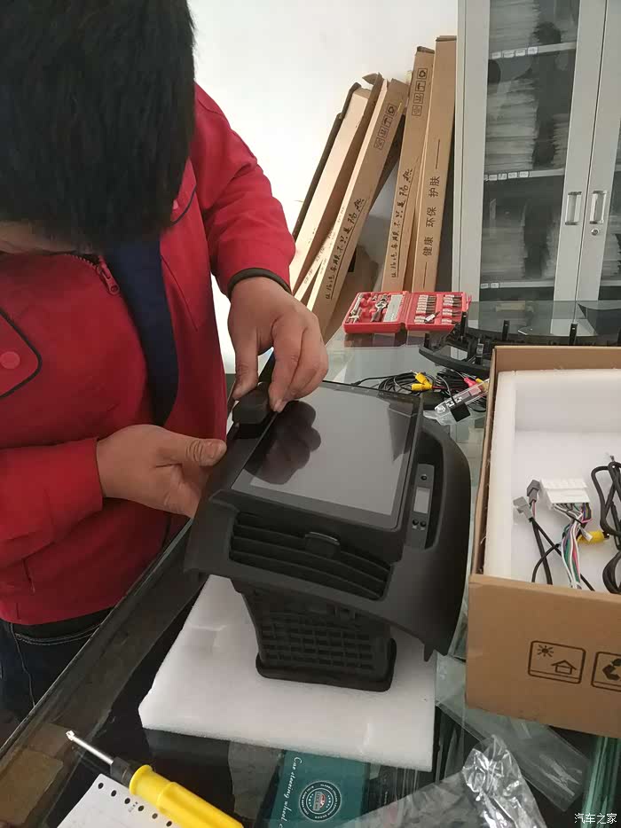 提前一天和安装店预约好安装时间,去了直接开搞,不用等这等那的。下图是把电子表安装到新车机上