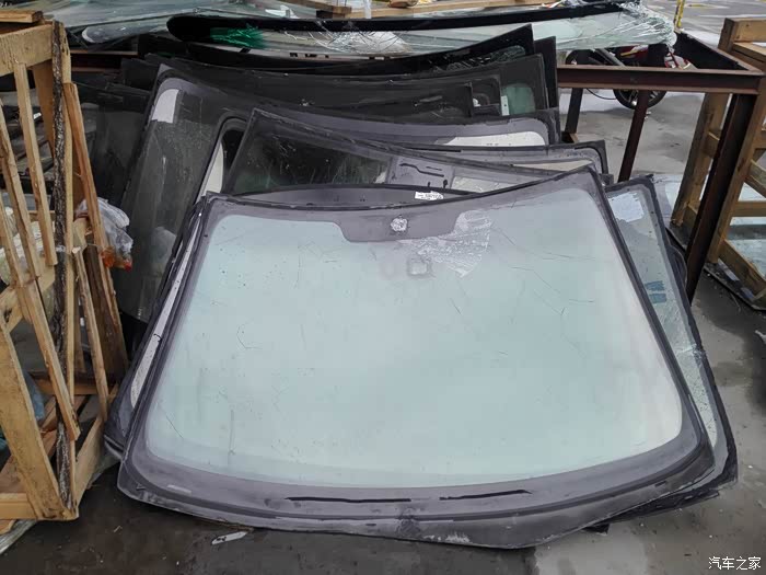 更换淘汰下来的前档玻璃,静静的靠在大门之外。