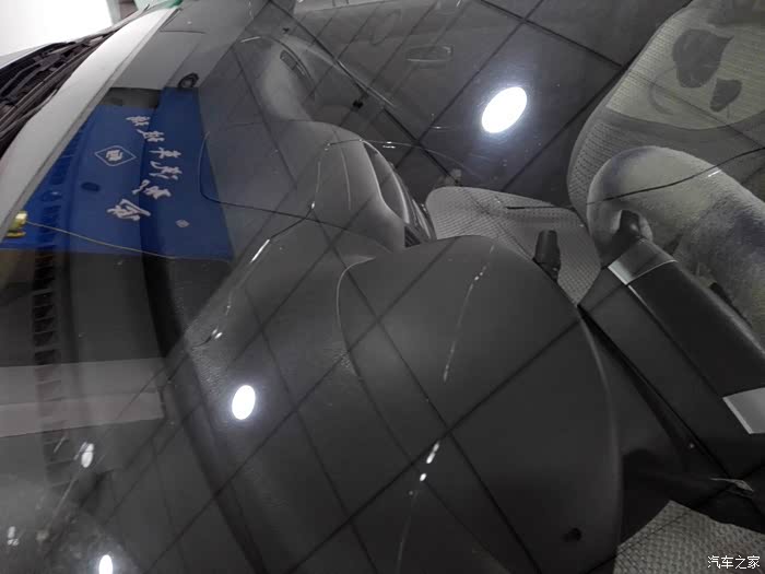车友们请仔细的看看,前挡玻璃上好多的裂纹“张牙舞爪”。