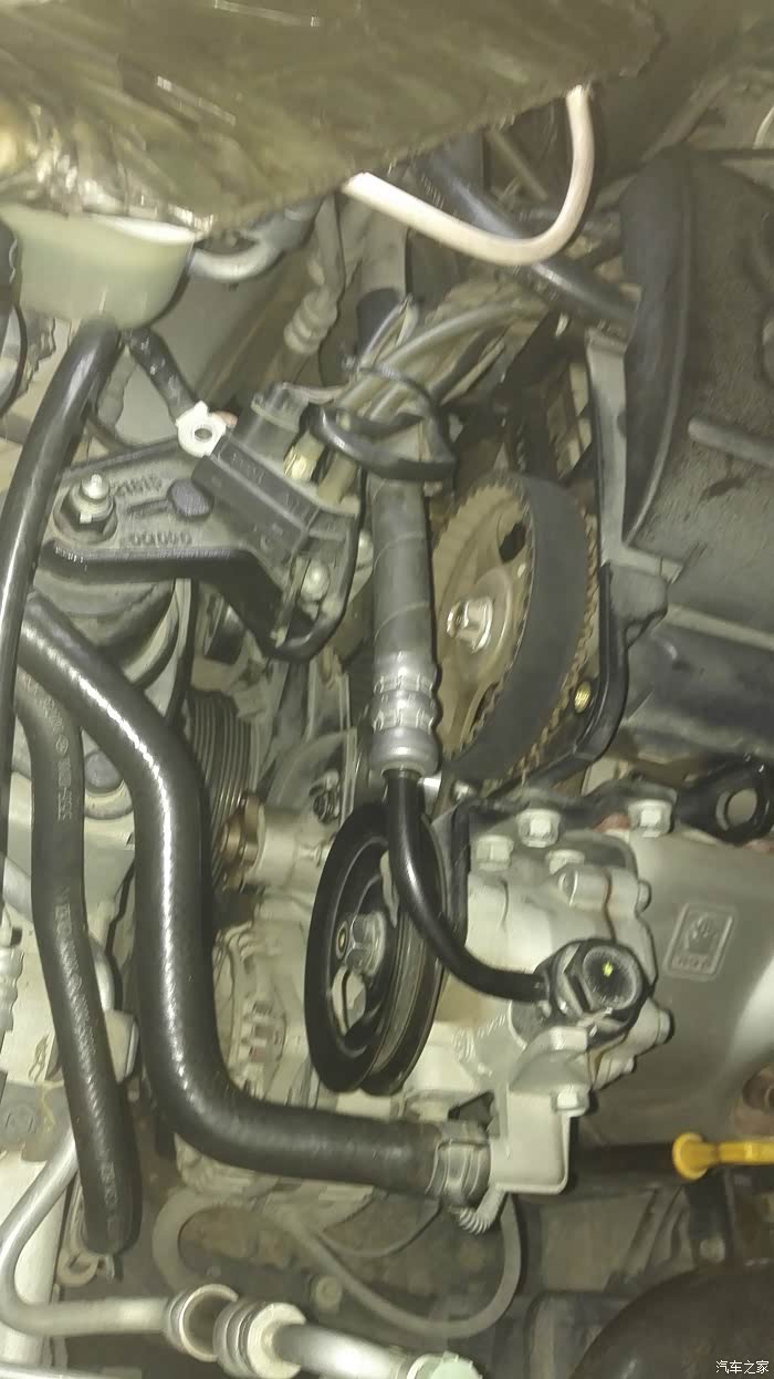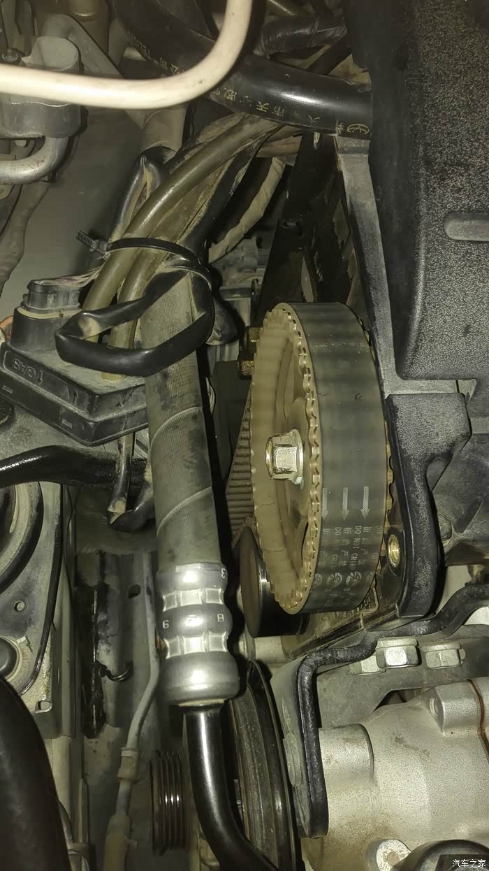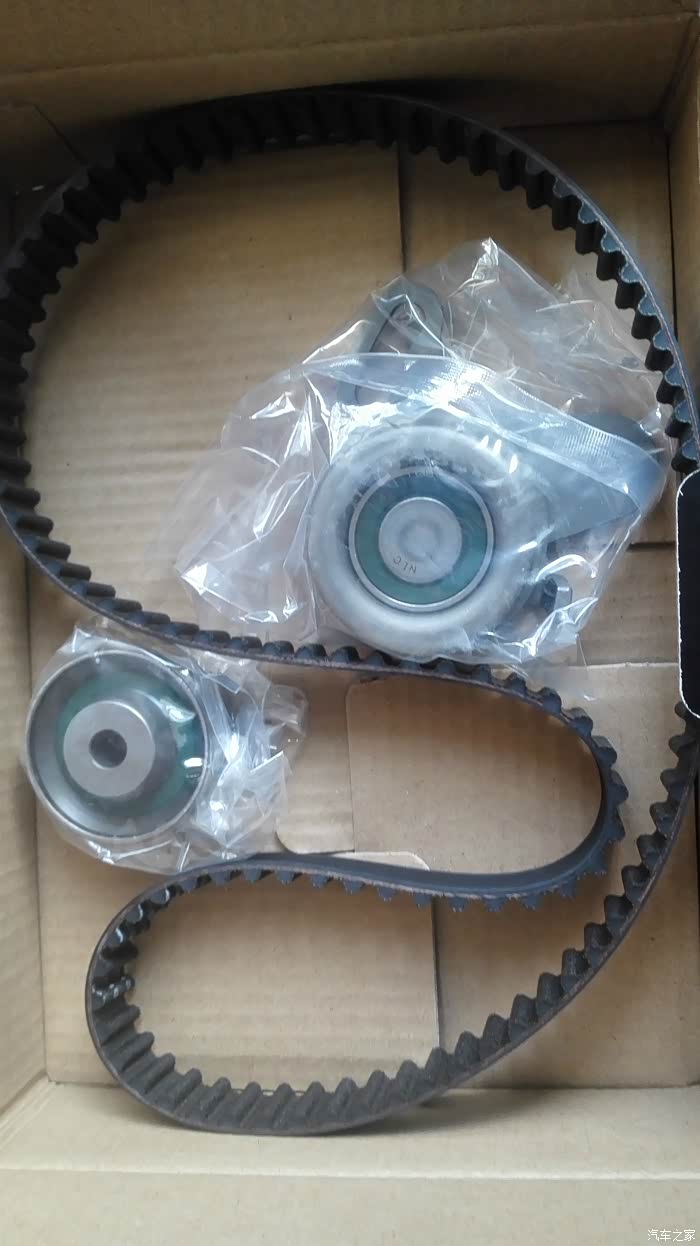 7万多公里更换了一套现代正时皮带,现在又行驶了7万多公里,没多想,正时皮带该换了。正时皮带的作用:发动机的正时皮带也叫做齿形皮带,通过上面的齿形槽连接着曲轴和凸轮轴。我们知道发动机要平稳正常的工作,活塞的运动位置、气门的开启和关闭时刻、喷油和点火的时刻必须同步,而这正是通过正时皮带来完成的。正时皮带属于橡胶部件,随着发动机工作时间的增加,正时皮带和正时皮带的附件,如正时皮带张紧器和水泵等都会发生磨损或老化。如皮带断裂后会造成车辆抛锚,发动机内部气门损坏,严重可导致汽缸盖的报废。一般情况下,汽车一般每8万公里更换正时皮带。