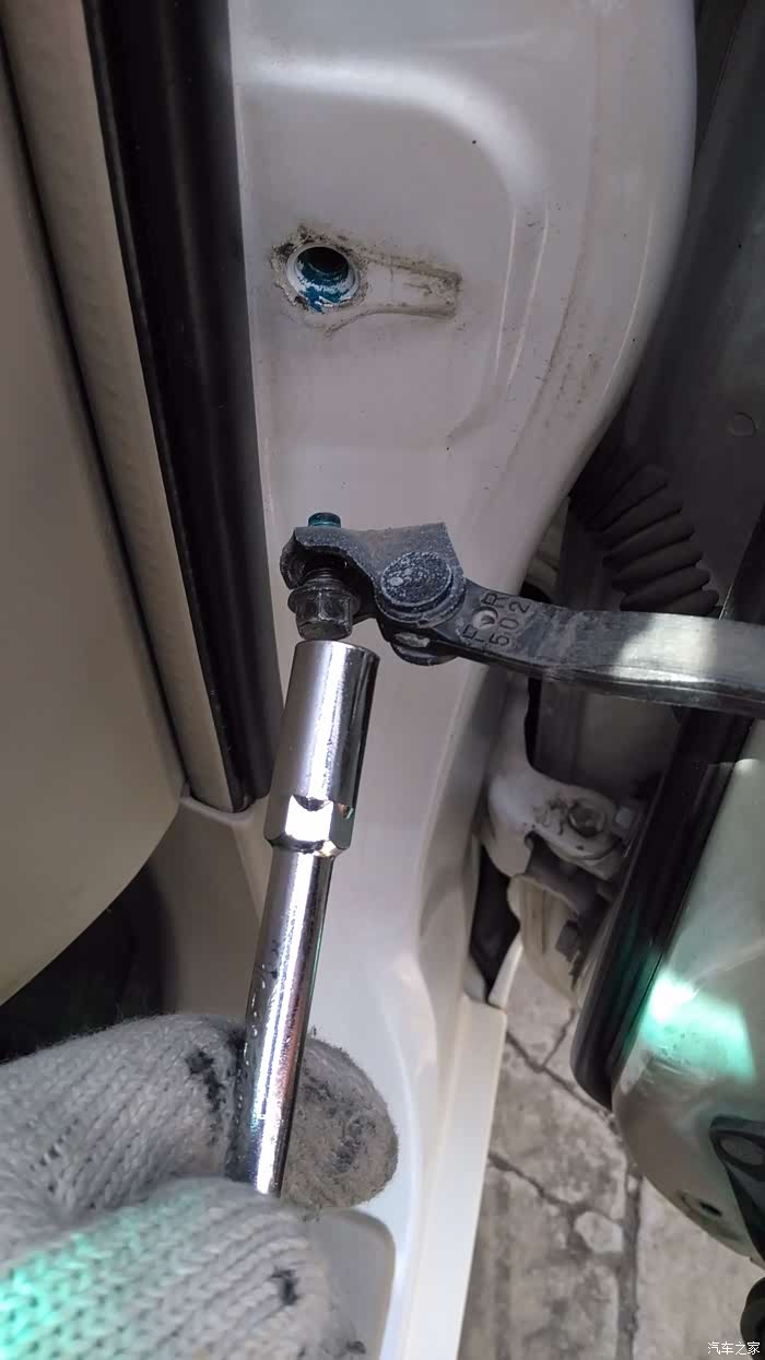 开始副驾驶的限位器更换,同样是2个螺丝卸下
