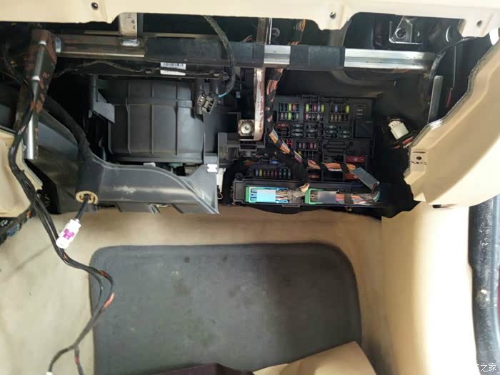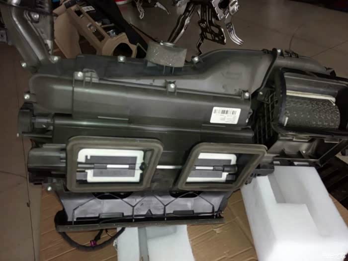 这个造型怪异的箱子里面分别有一个暖风水箱和一个负责冷空调的蒸发器。
